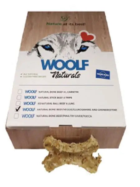 The Woolf Natural Bone with Beef, Vegetables, Glucosamine, and Chondroitin is a nutritious and functional treat designed to support your dog's health and well-being. Here's a detailed overview: